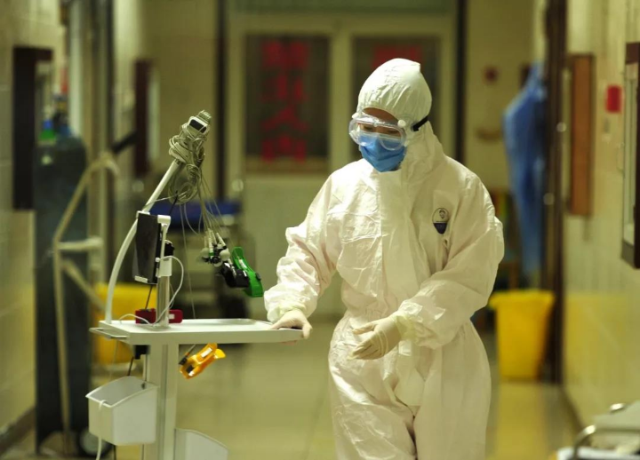 1月25日(大年初一)一名医生在沧州市中心医院隔离病房工作。(苑立伟摄)