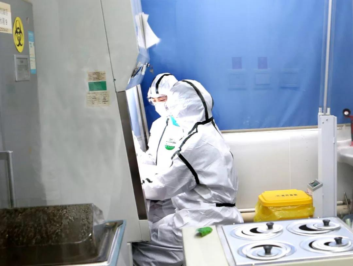 1月24日(大年三十),疾控中心微生物检验室正在进行新型冠状病毒检验。(李更生摄)
