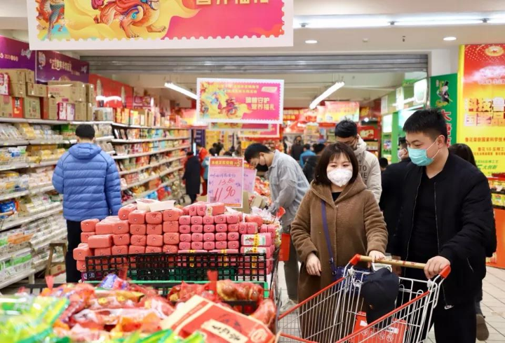 1月27日华北商厦超市各种商品供应充足,市民购物井然有序。(陈雷摄)
