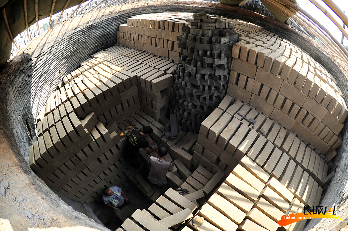任丘市出岸镇古建砖厂工人正在准备出窑。沧州日报记者 苑立伟 摄