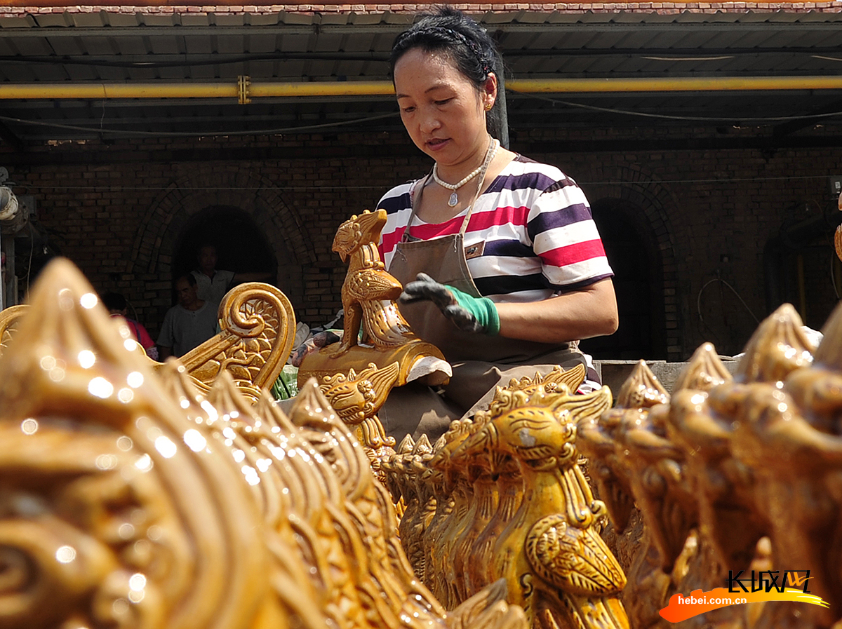 任丘市出岸镇古建砖厂工人在整理仿古建筑装饰物。沧州日报记者 苑立伟 摄