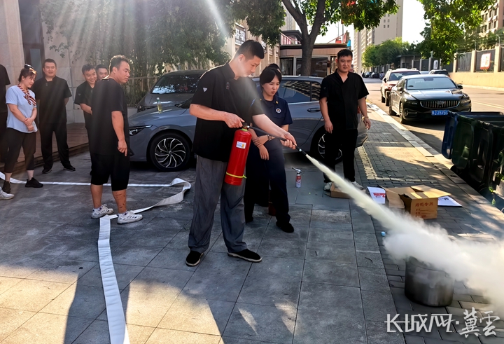 理论学习结束后,消防宣传员组织全体员工开展了“真出水、灭真火”实操培训,现场演示干粉灭火器的正确使用方法。参训人员分组上前实操,按照规范动作扑灭明火。同时,员工还亲身体验了消火栓操作,进一步提升应对火灾的实战能力。