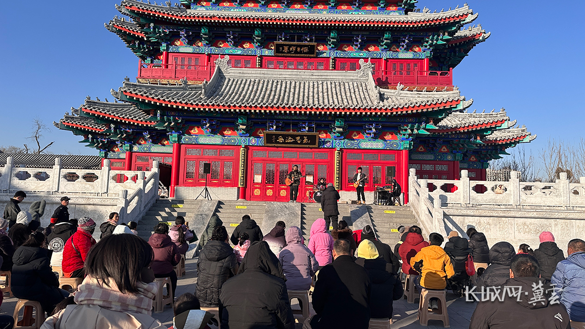 长城网・冀云客户端讯(记者 崔上 通讯员 王敏江)近日,在沧州市南川老街朗吟楼前,一场独具韵味的冬日民谣演出温暖上演,悠悠民谣声与千年运河的脉动悄然共鸣。据悉,本次活动是沧州市文化广电和旅游局持续推进的“文化艺术进景区”活动之一。通过将民谣等现代音乐艺术植入景区,以创新的形式活化运河深厚的文化底蕴,为市民与游客提供更具温度与深度的沉浸式文化体验,让传统文化空间在当代艺术表达中焕发新的活力。
