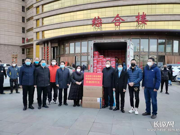 沧州市浙江商会疫情期间为医院捐助物资。商会供图