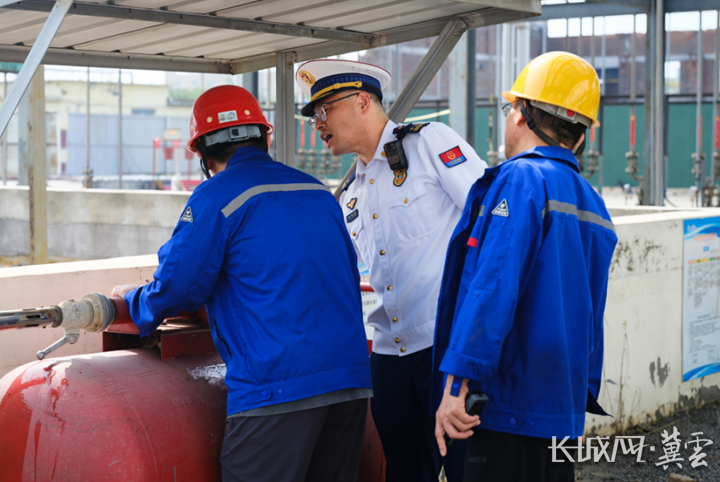 消防监督人员深入辖区重点企业开展检查。通讯员 张涵 摄