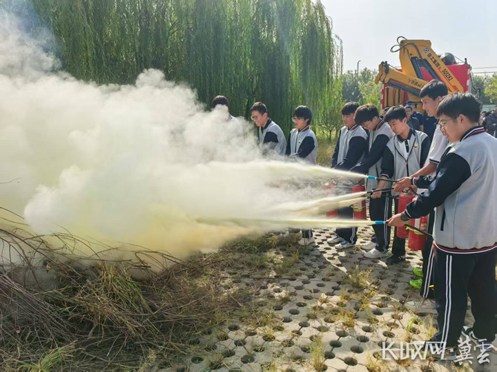 同学们学习使用灭火器。通讯员 李玺原 摄