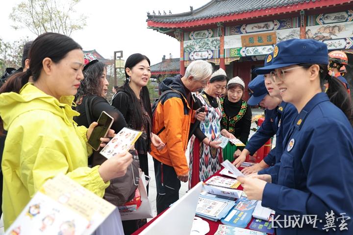 活动现场,消防宣传学习体验摊位前人头攒动。内容丰富的消防知识彩页和精致实用的消防文创产品,吸引了众多游客驻足。宣传人员围绕家庭生活实际,用通俗易懂的语言讲解家庭防火“三清三关”、安全用火用电、火场逃生等知识,激发了群众浓厚的学习兴趣。