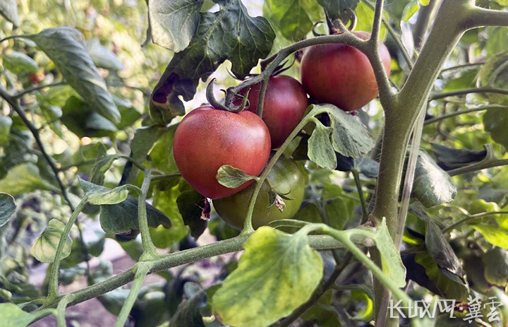 一颗颗青亮饱满的铁皮西红柿挂满枝头。通讯员 侯志慧 摄