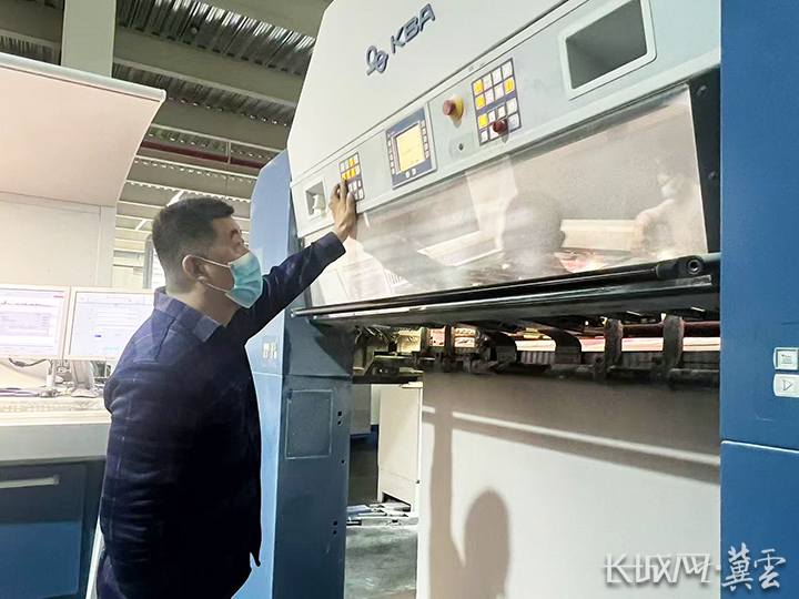 工作人员操作德国高宝全开印刷机设备。长城网·冀云客户端记者 董肖飞 摄
