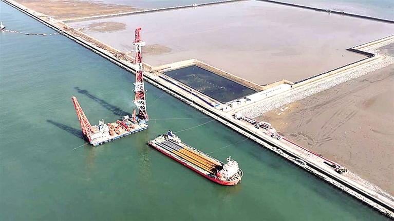 日前,随着最后一根数十米长钢管桩精准沉入预定位置,黄骅港散货港区原油码头一期工程码头区域14根钢管桩完成试桩,这标志着黄骅港首个30万吨级专业化原油码头进入主体施工阶段。