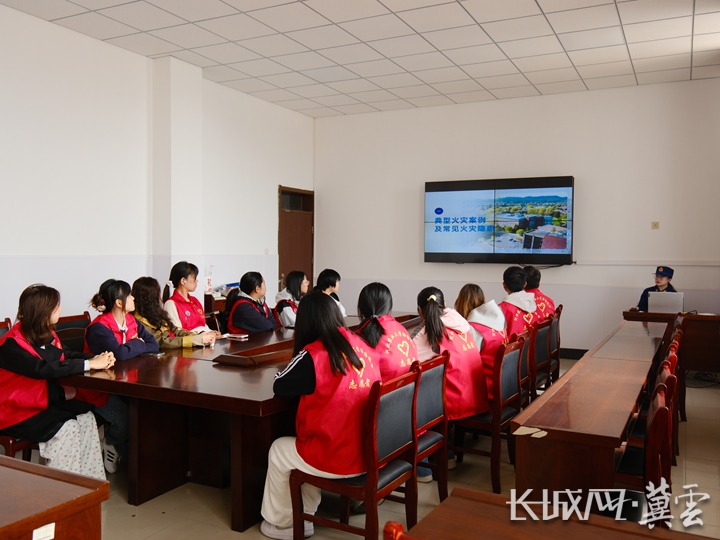 消防宣传人员为大学生志愿者授课。通讯员 张涵 摄